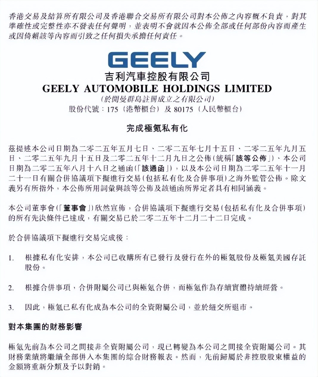 12月22日晚,吉利正式官宣完成對(duì)極氪的私有化,極氪成了吉利的全資附屬公司,同時(shí)從紐交所摘牌退市。從今年5月提出收購(gòu)到最終落地,這場(chǎng)歷時(shí)7個(gè)月的整合,看似是一個(gè)品牌的“回歸”,實(shí)則藏著中國(guó)汽車產(chǎn)業(yè)從“單點(diǎn)突破”轉(zhuǎn)向“體系作戰(zhàn)”的大邏輯。咱們?nèi)锶硕记宄?,這事兒對(duì)吉利、對(duì)極氪,甚至對(duì)整個(gè)行業(yè),都不是小事。